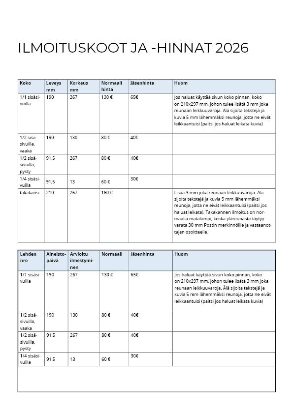 HUOM! Ilmoitukset maksetaan etukäteen.